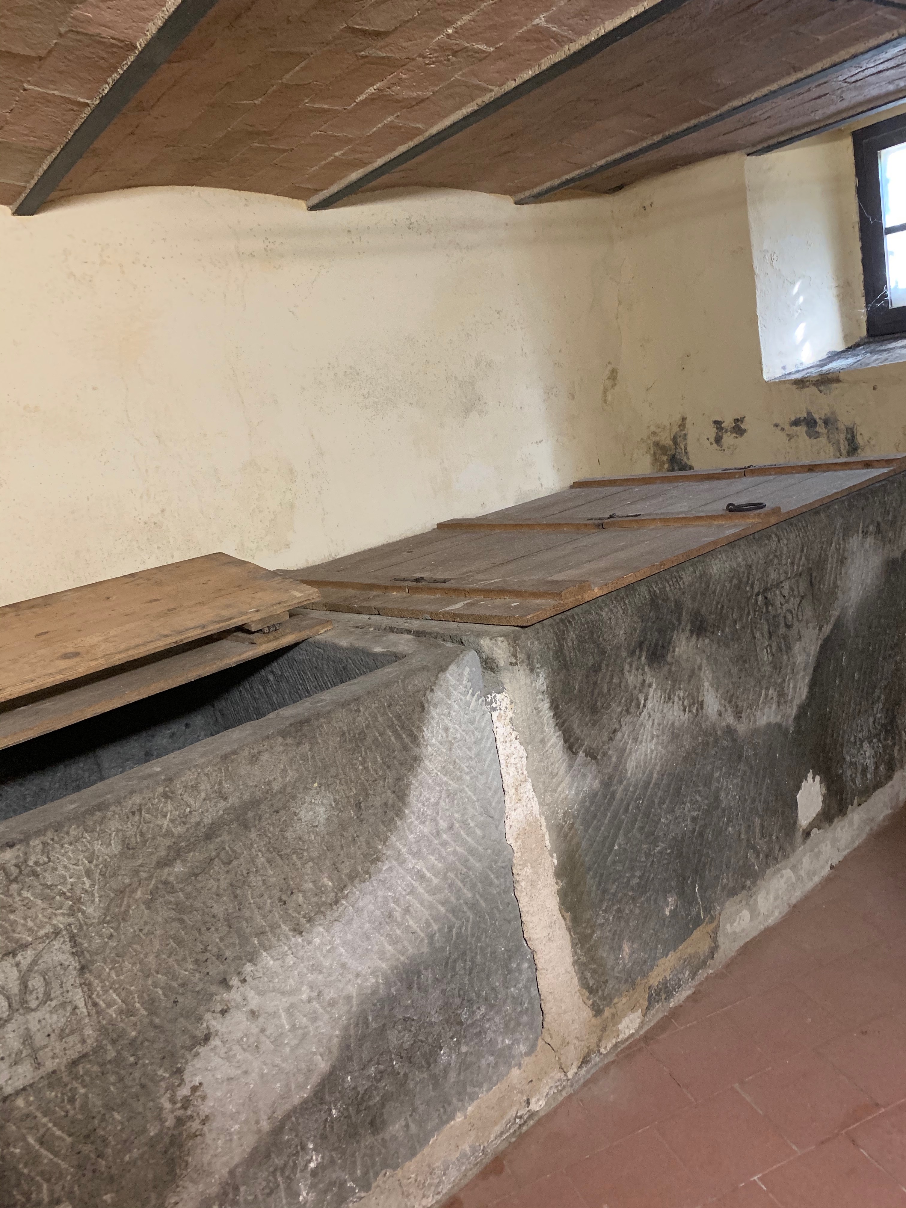 The splendid sunny day afforded great views from the tower, which doubles as the vinsantaia, or place where the Vin Santo is stored. The cool, breezy spaces of the tower, floor by floor, are an excellent place first for letting the grapes dry to perfection, and then for the little barrels to be laid in for aging. So spectacular – and spotless! – that I couldn’t stop taking pictures, inside and out.