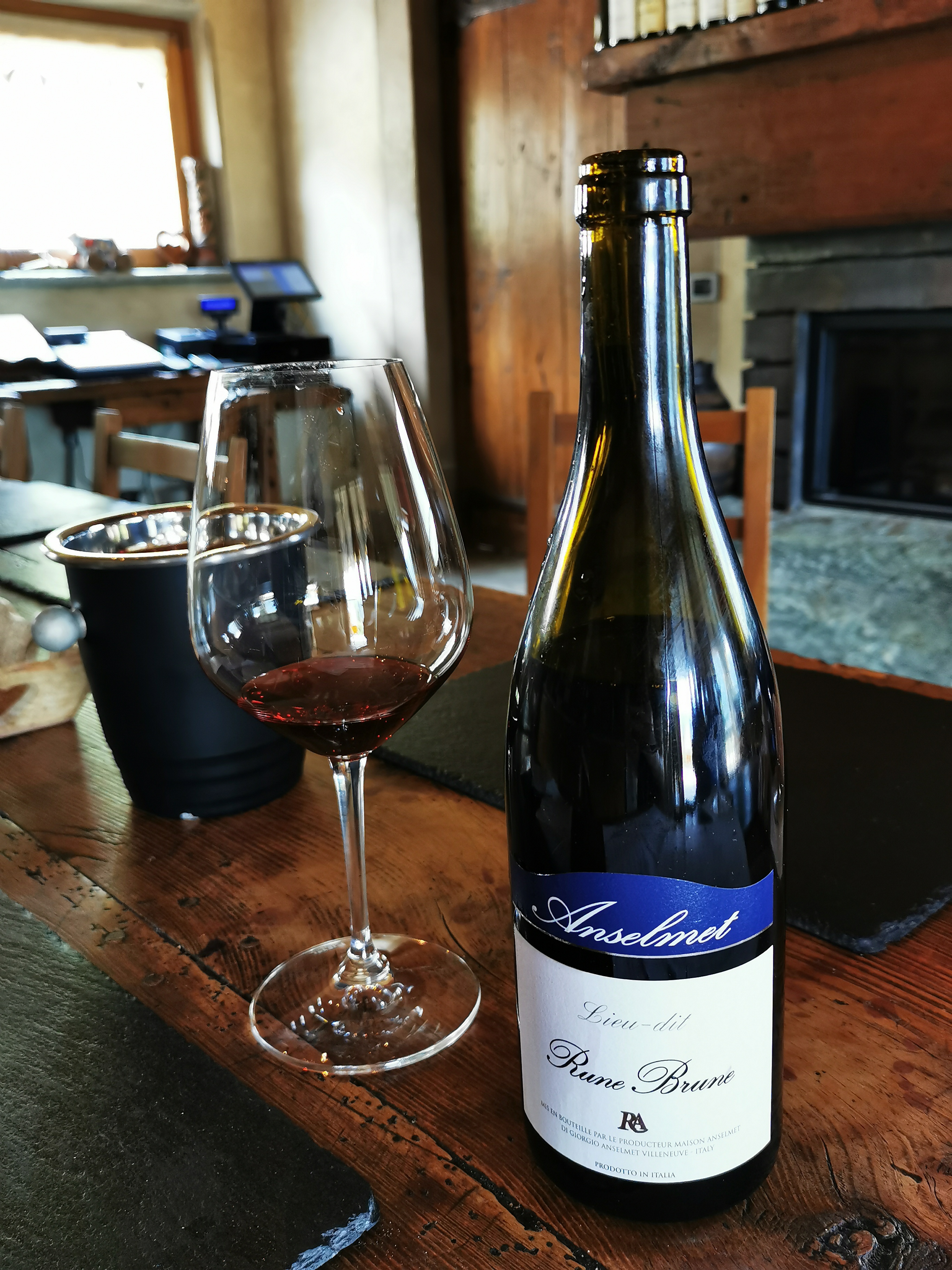 Drinking a wine while gazing on its own vineyard is an incomparable treat: here the floral and berry aromas of Torrette Superiore (a blend of Petit Rouge, Cornalin, Fumin and Mayolet) were prevalent, making me wish I had a piece of fontina, the most famous local cheese, to pair with it!