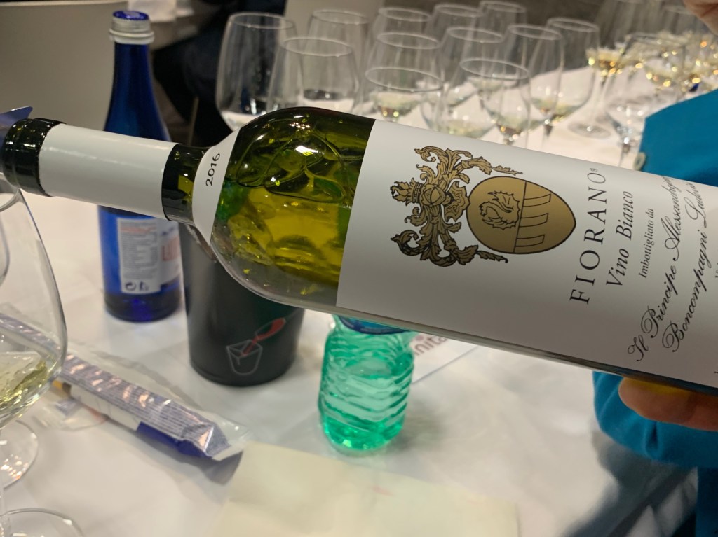 By the time we got to wine number 11, you didn’t know whether to cry uncle, or just wish this moment would never end! This was perhaps the most unusual choice: a Viognier and Grechetto blend from Lazio, Tenuta di Fiorano’s Fiorano Bianco 2016, described on the label as simply vino bianco. A little spicey, the nose did not speak to me. But on the palate: another story. Cannot help but think though, why is it that Lazio is better known for international grape varieties when it does have the raw materials out there in Frascati and the Castelli?