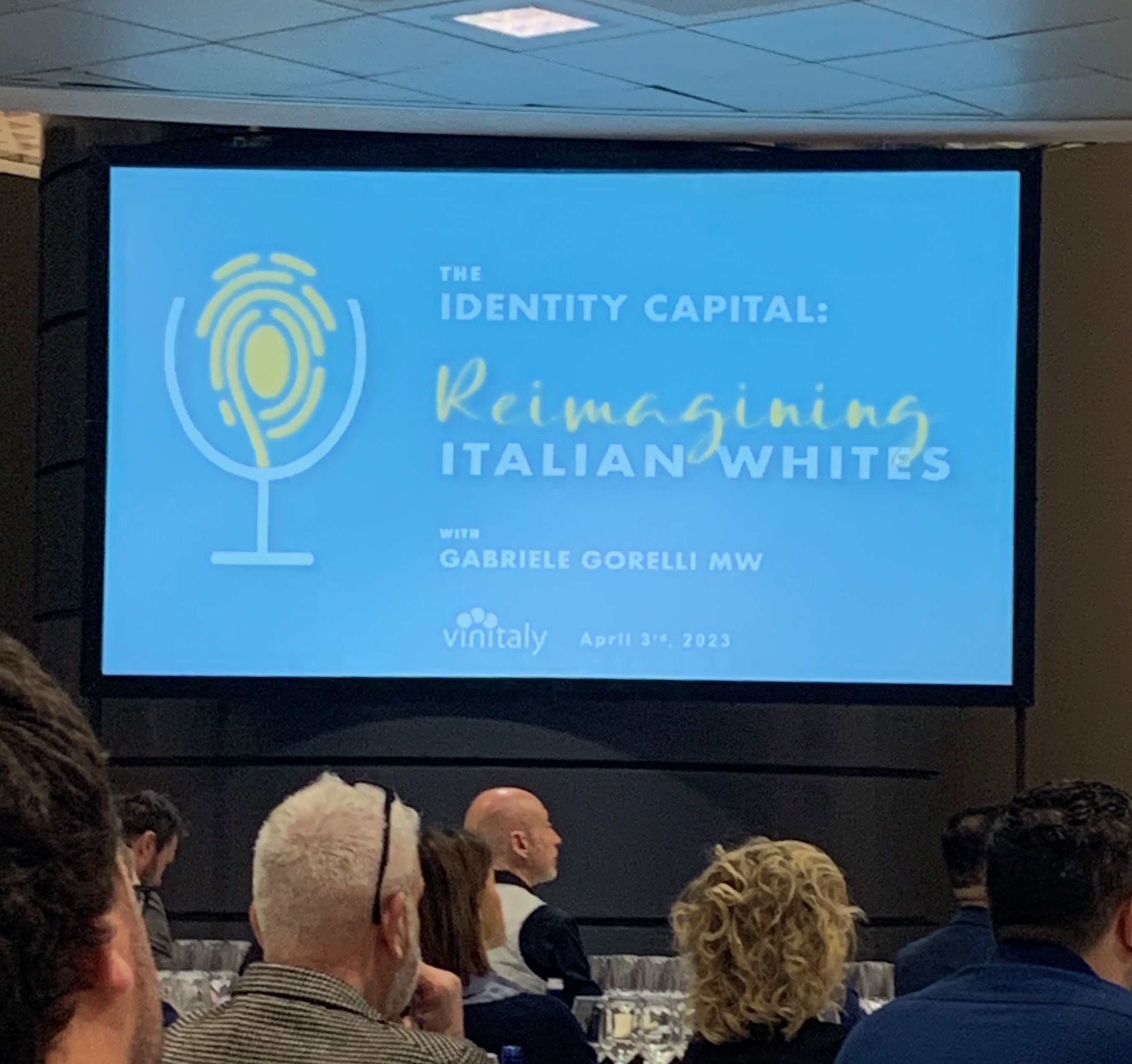 Contemporary whites from Italy with a focus: identity capital, or that collection of personal assets, how you understand yourself and describe yourself to others. As Gorelli pointed out, moving beyond reds means introducing people to drinking, not just tasting. So what is the identity capital of Italian whites?