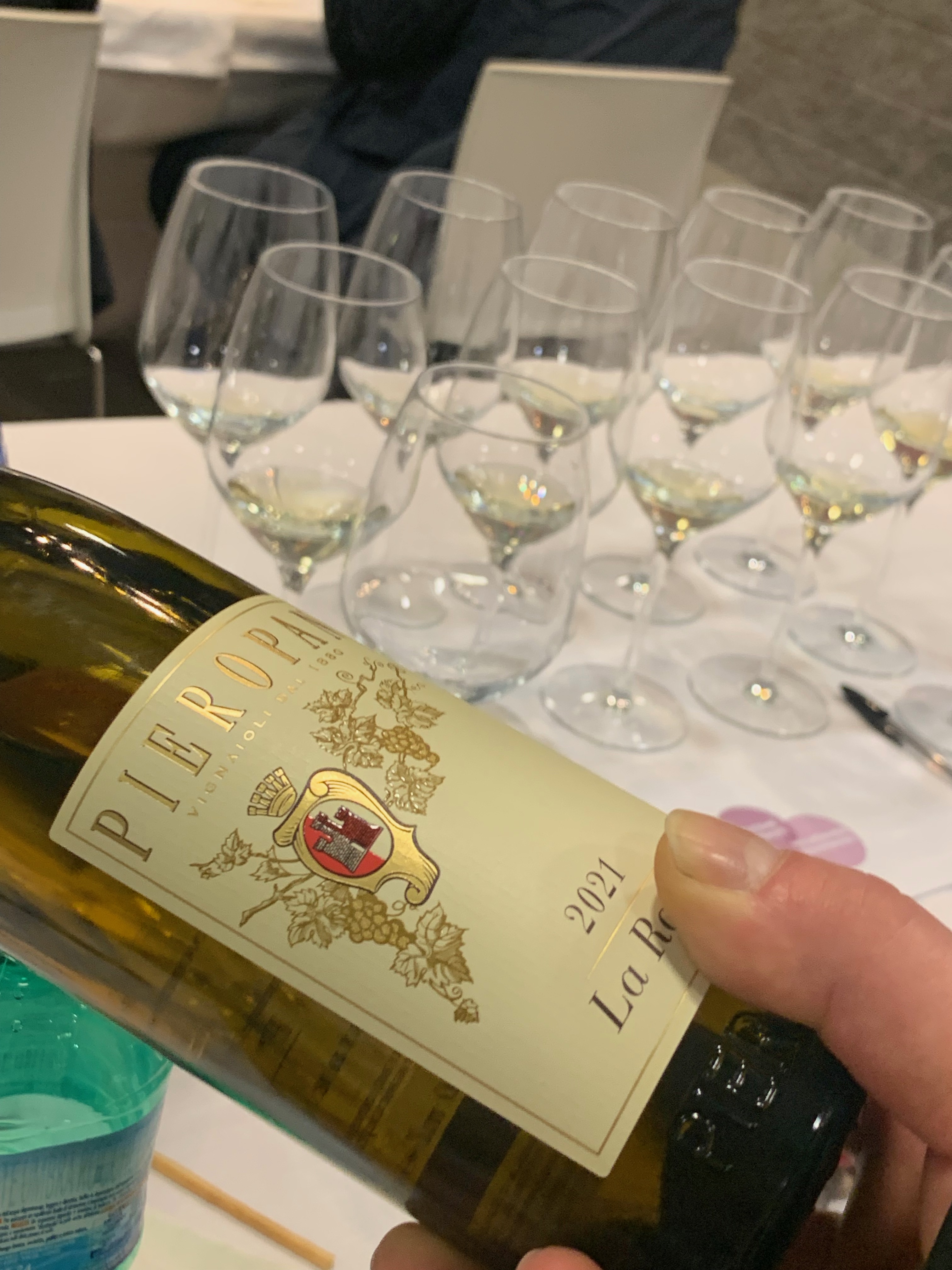 The first wine was surprisingly from Puglia, a region known for its reds, with a Verdeca from Masseria Li Veli. Owned by a Tuscan family from Gorelli’s native Montepulciano, Li Veli made this Askos Salento IGT 2021 vintage in a smart style, to let people drink and enjoy the salty minerality.