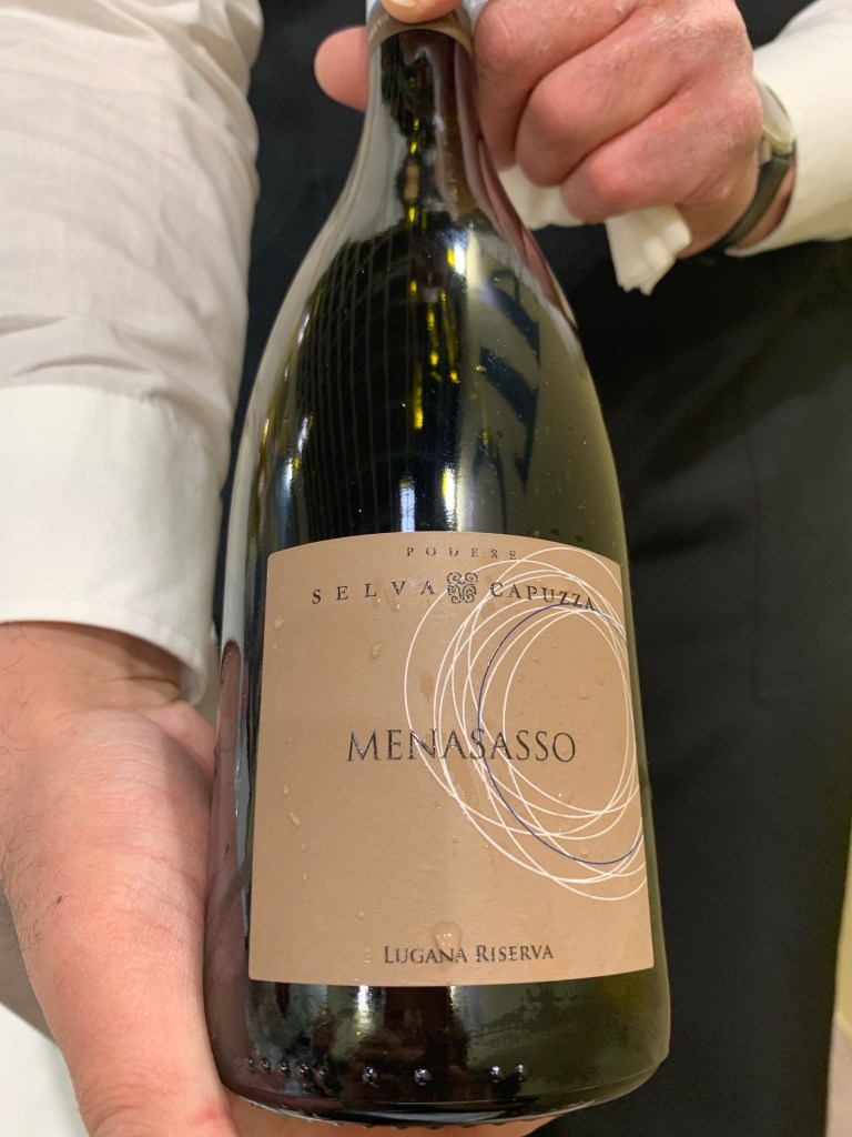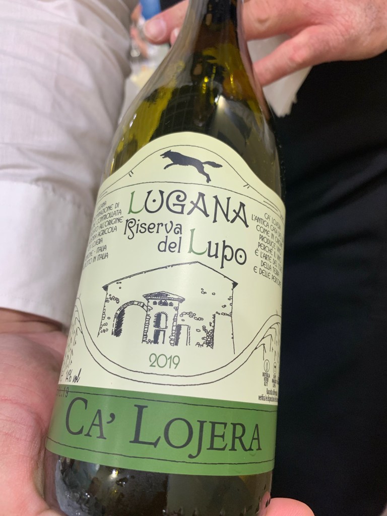 Fourth up, Ca’ Lojera’s Lugana Riserva del Lupo 2019. Here, the golden tones are starting to emerge, and this one looked like oil in the glass. On the nose, some tropical fruit, lemon peel, and a smoky note. It’s hard to believe this Riserva doesn’t see wood. But maybe there is some noble rot to help it along. Simply yummy!