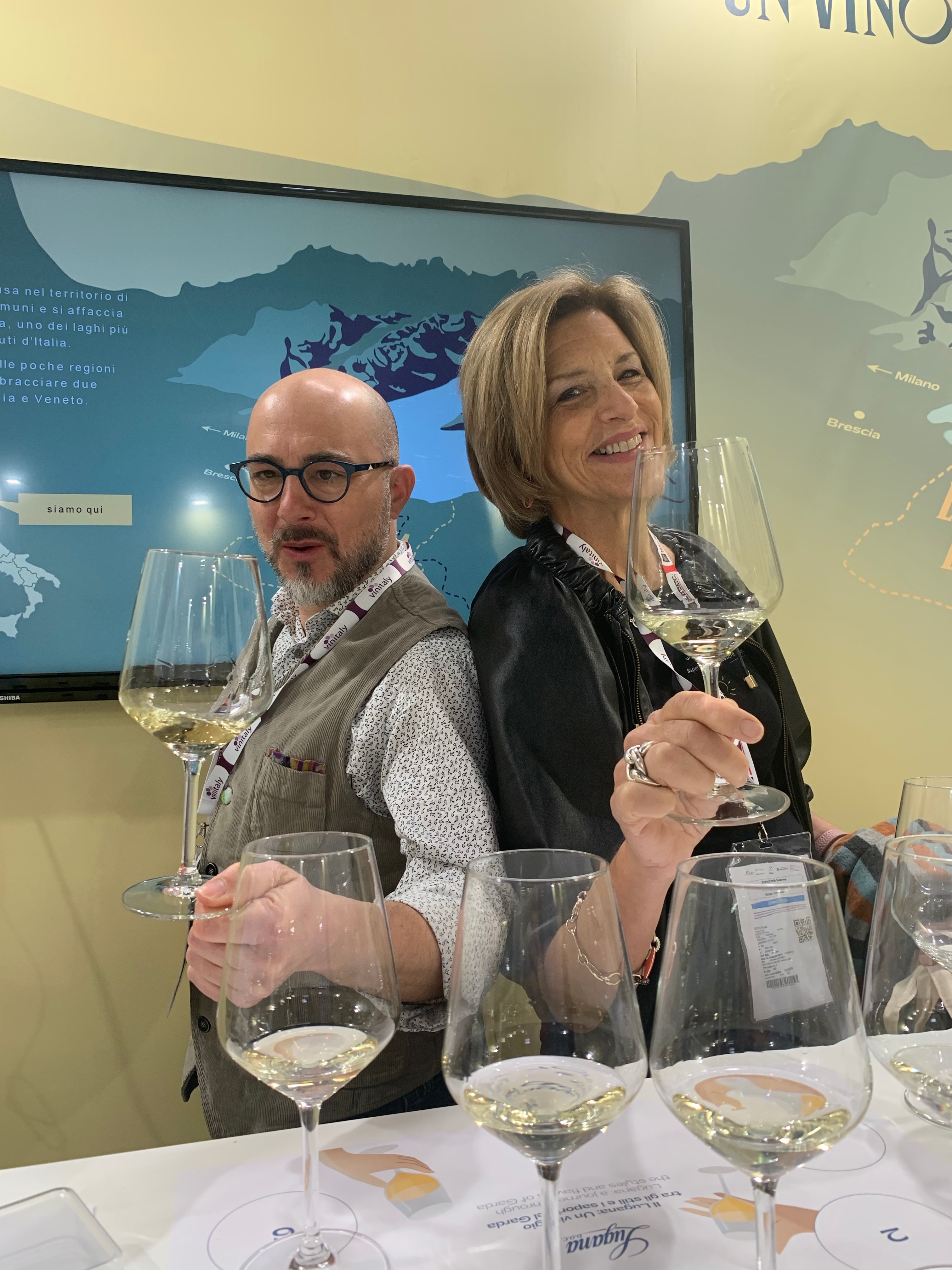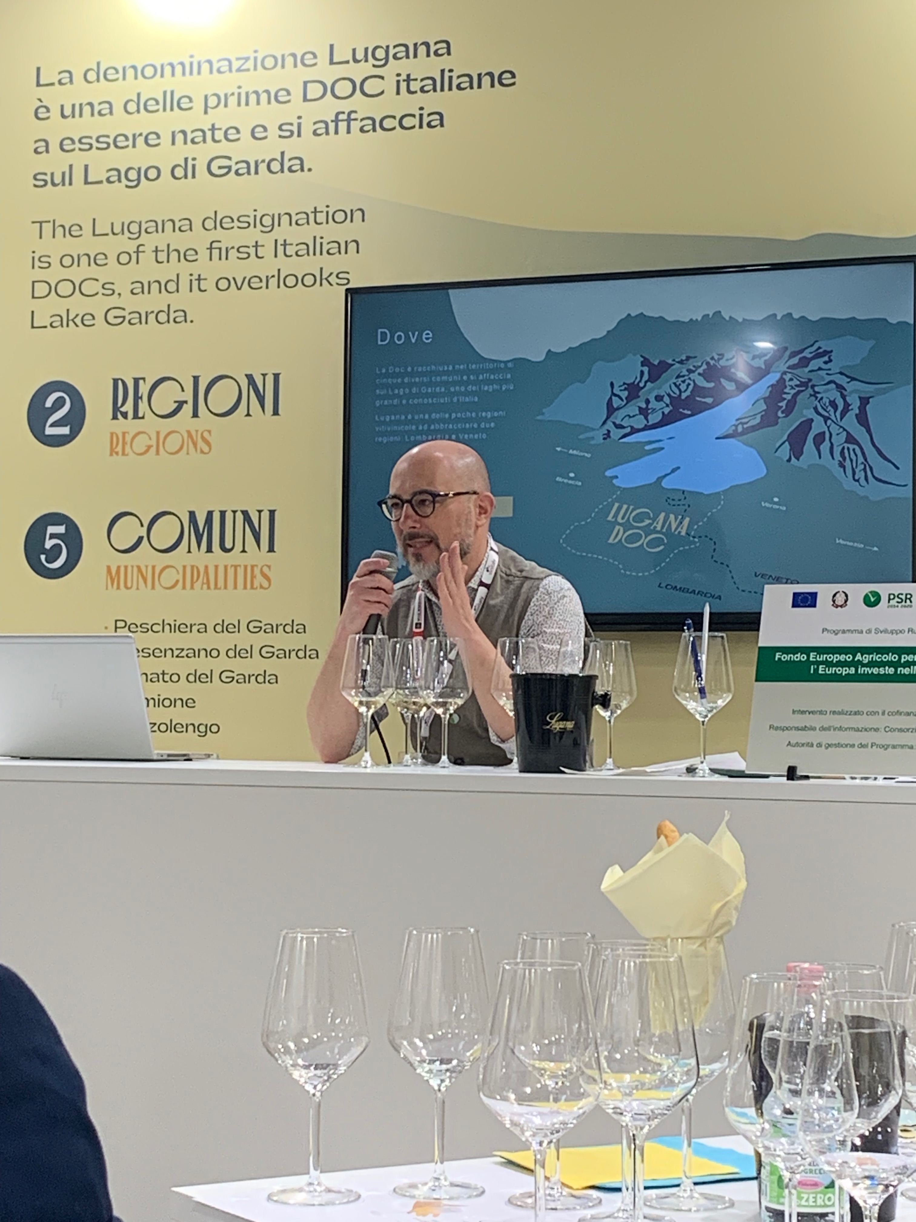 Lucky me got to participate in a tasting sponsored by the Consorzio Tutela Lugana DOC at this year’s Vinitaly. Led by wine expert at large, Filippo Bartolotta, this was one stylin’ tasting! Get a load of those graphics – so chic!