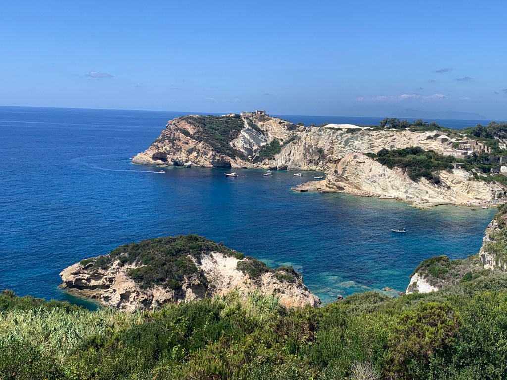 Destination: Ponza, a tiny island in the Tyrrhenian Sea off the coast between Rome and Naples. And I mean tiny: just a little over 5 miles long and 1.5 miles wide! For some reason, its name kept coming up… that’s when you know the Universe is calling you to visit. Like a Circe’s song (and no coincidence that the nearby promontory is the Circeo National Park), I was lured to visit Ponza, where – believe it or not! – two friends make wine!