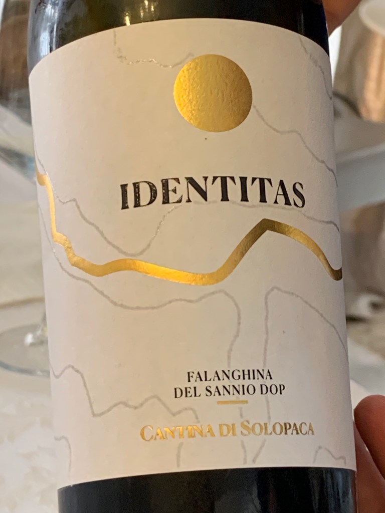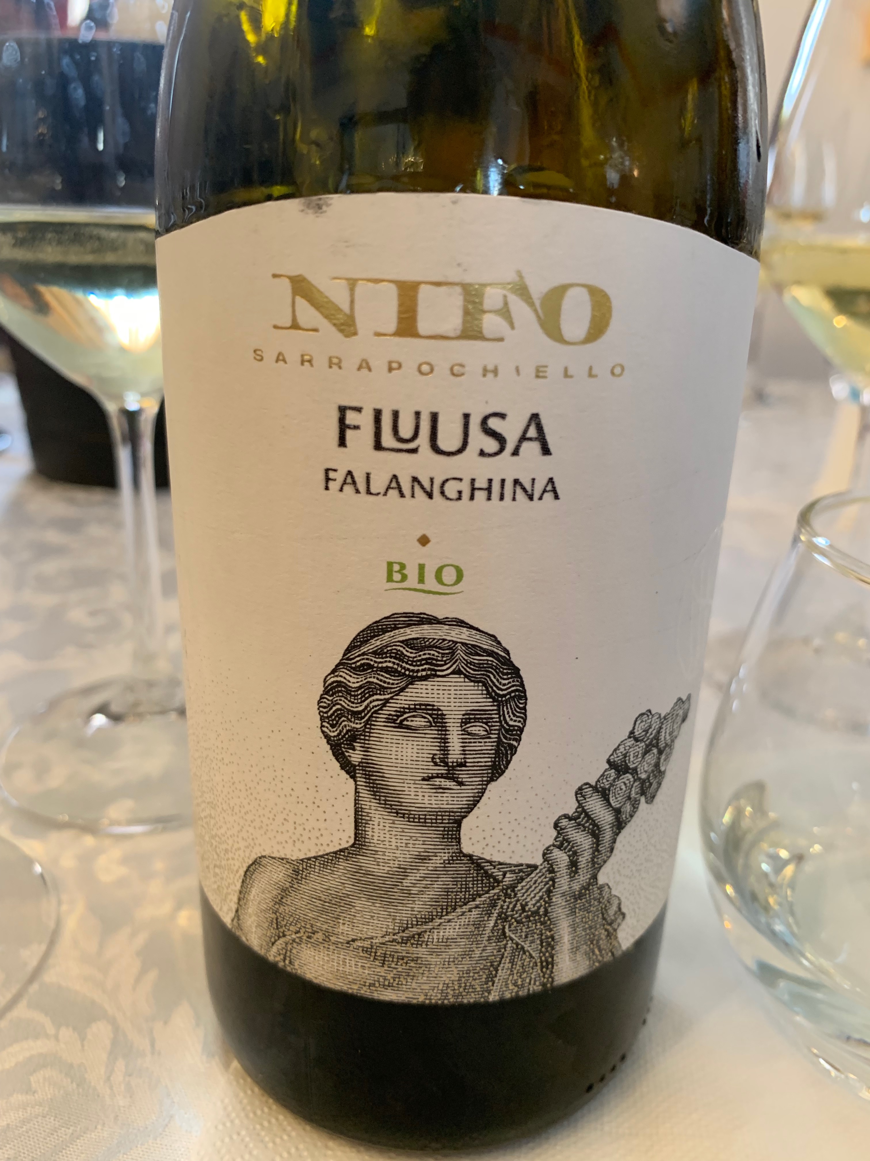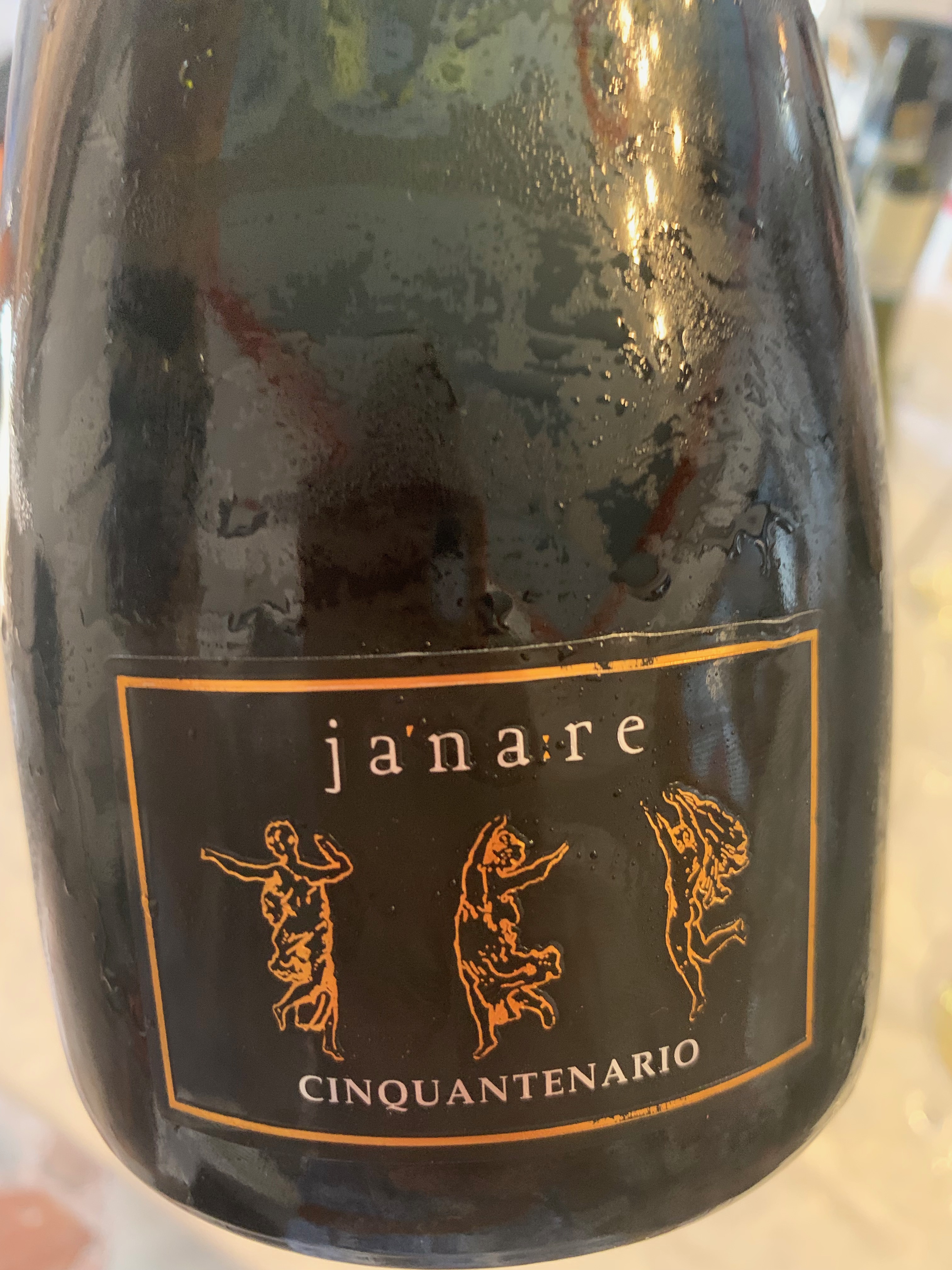 The tasting: our first wine was made by the Cantina di Solopaca, a large cooperative from the town of Solopaca, located in this Land of the Samnites (an ancient tough and war-mongering Italic tribe dating to 1000 BC!) Identitas Falanghina del Sannio DOP, like its name states, represents the territory with a pineapple nose and fresh appeal. The next three wines were from the Taburno area: the first, La Masseria di Maria Taburno Falanghina del Sannio DOP showed great complexity on the nose, with pine forest, pineapple, vanilla, chamomile, saffron, green pear, stone fruit and a balsamic note. The third wine, Il Poggio Falanghina del Sannio 2022, was an intense gold yellow color and on the nose showed eucalyptus, pineapple and pear drop; on the palate a hint of flint and minerals. By the time we got to Nifo Sarrapocchiello Fluusa Falanghina Bio, an organic wine with a beautiful label, something had me thinking Asian cuisine. Nice mouthfeel and a lovely aftertaste of exotic fruit, some of the warmth here can be attributed to the 14% abv. Our host’s Alba Nora Falanghina del Sannio with a deep yellow color had a distinctively sweet nose with vanilla, some stone fruit or even stewed apricot nice acidity and salinity. But the real surprise was the Janare Cinquantenario Metodo Classico Millesimato 2018 (the year was not that evident on the label). Fifty 5 – 0 months on the lees, with the dancing witches of Benevento on the label, this wine may be described in a word: WOW!