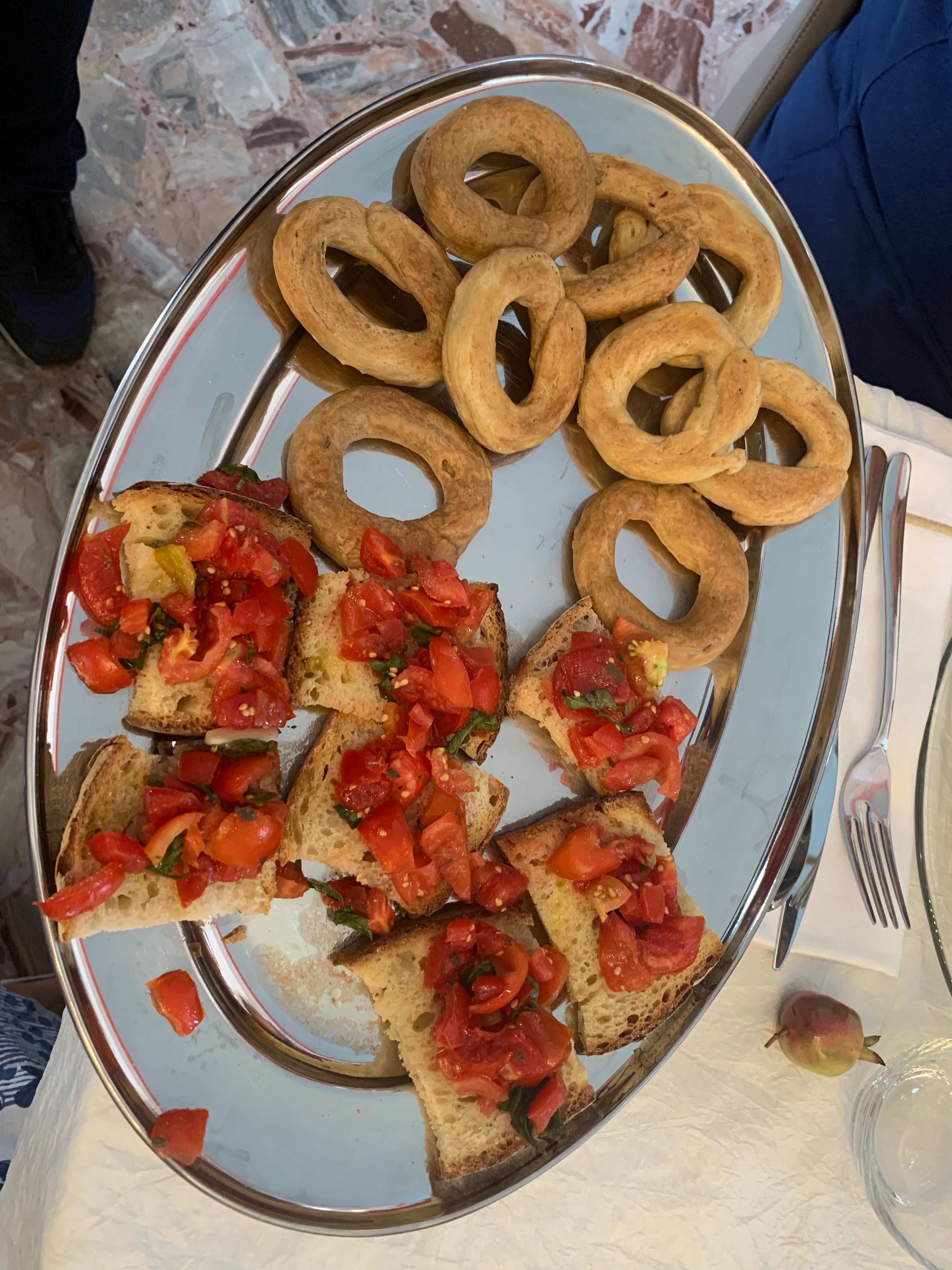 On a trip like this, one understands the meaning of the Italian phrase, Pancia mia, fatti capanna! Or, Oh tummy of mine, make yourself like a big shed – in other words, take in as much food as you can because it’s all delicious and there’s a ton of it!