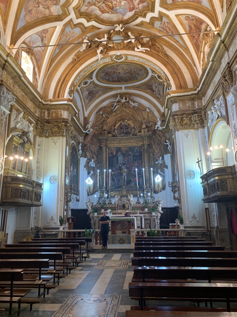 What awaited us here was a priest who could explain the great art of his San Sebastiano Church! And what a ceiling! Paolo De Matteis, one of the great artists of the Neapolitan Baroque, student of Luca Giordano, spent a lot of time here in Guardia frescoing this church, a clear sign of just how wealthy the town was some 300 years ago.