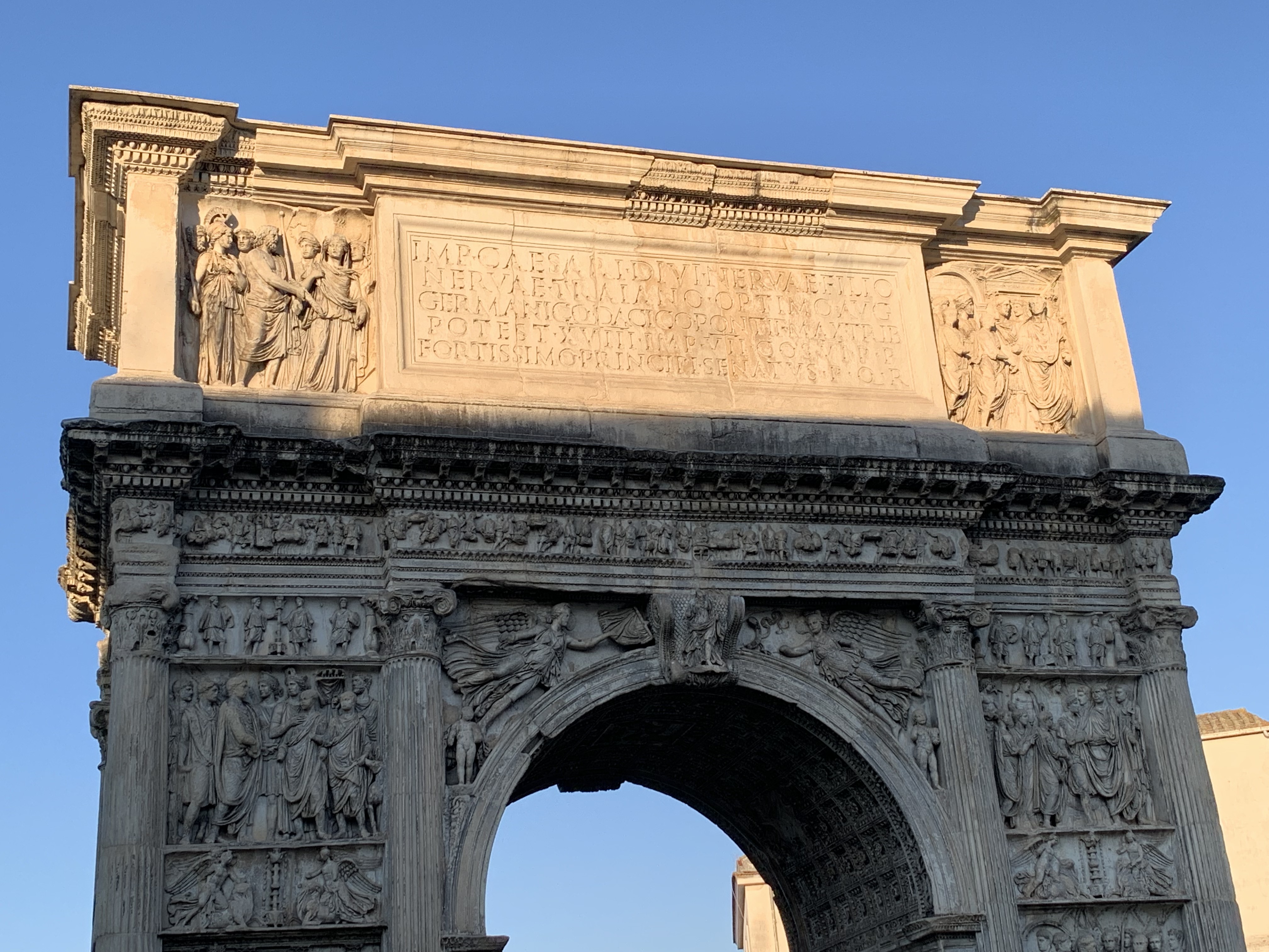Finally, Benevento, the capital city of the Sannio area. More beauty, more wine, more food: our cups runneth over. The Arch of Trajan, built between 114 and 117, greets you as you arrive in Benevento, the view travelers have been getting these past 2000 years. Can I say just how incredible this triumphal arch is? Day, night, it is always gorgeously surprising for its detail and beauty.