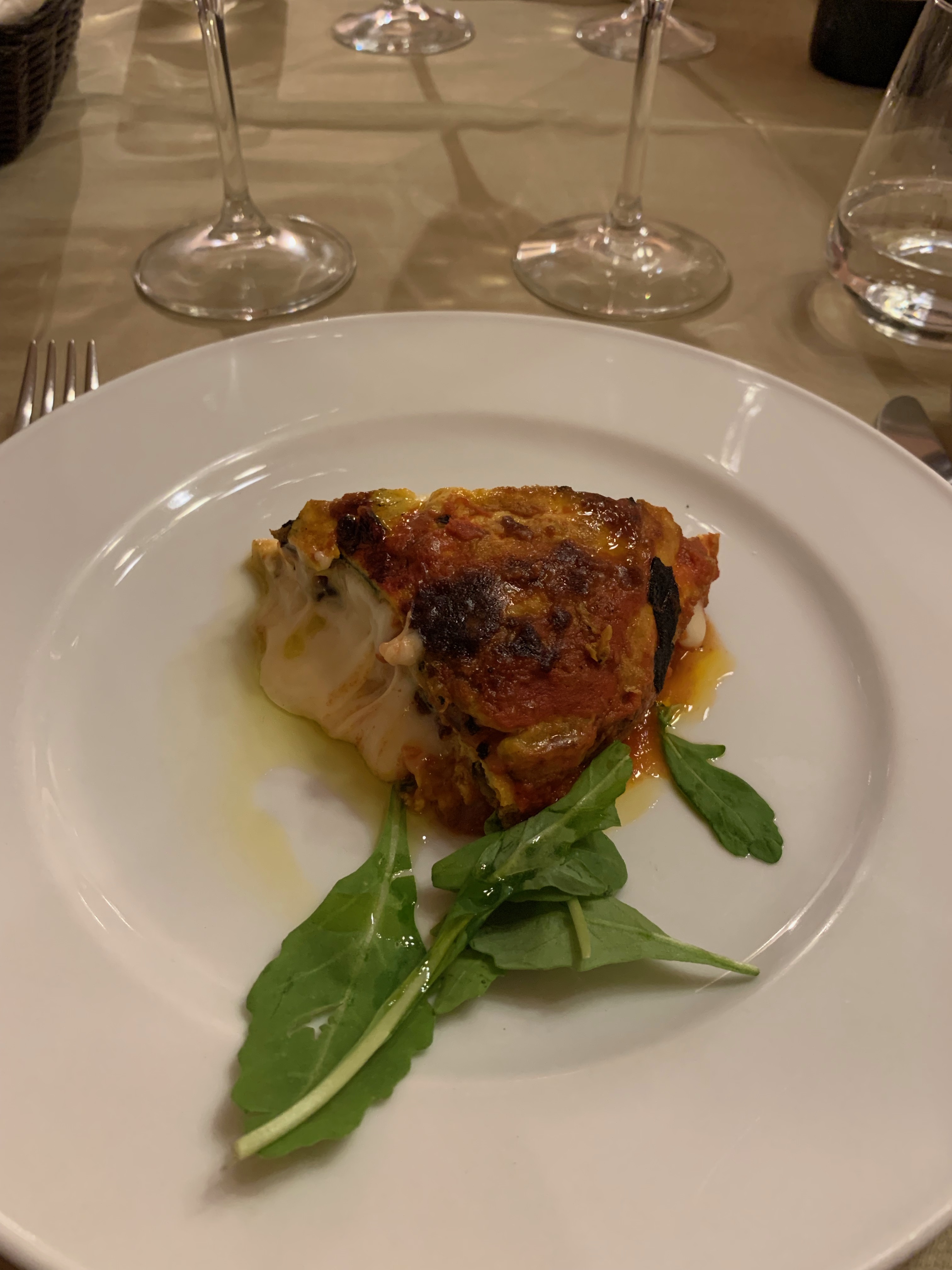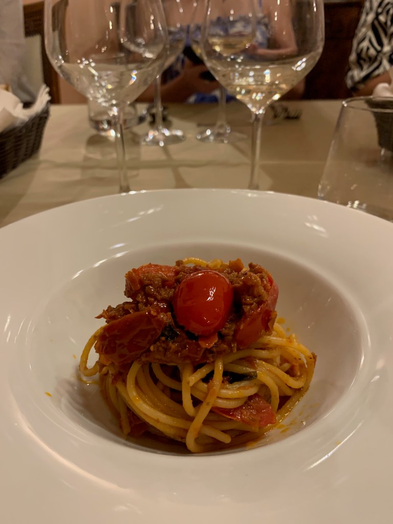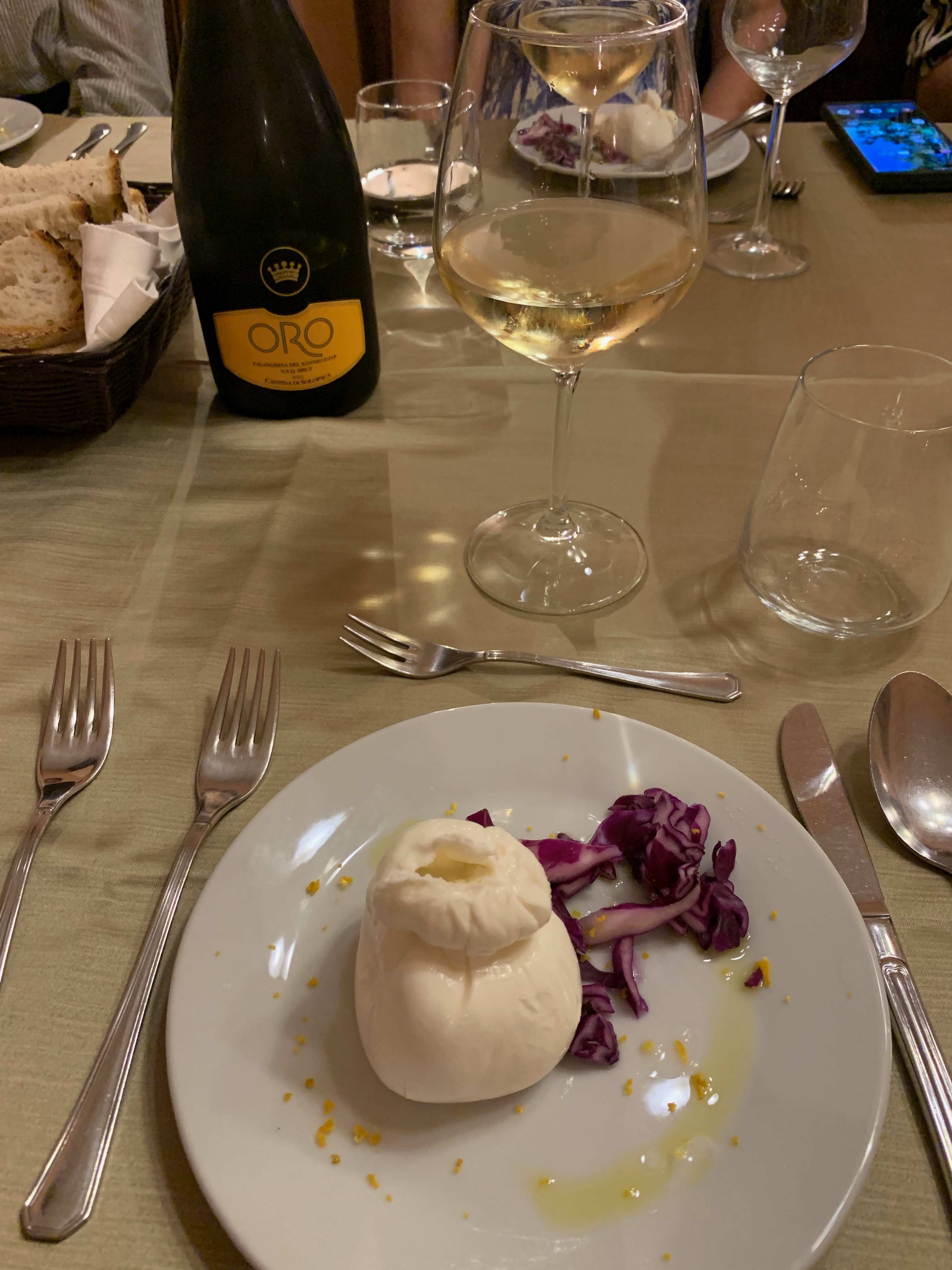 And it wouldn’t be Italy if the day didn’t end with dinner. A sinfully spectacular burrata filled with gorgonzola cheese was our starter. How do you top that? Maybe with an equally sinful eggplant parmigiana? Or how about the simplest of simple pasta dishes: with tomatoes and basil, the true test of a great chef.