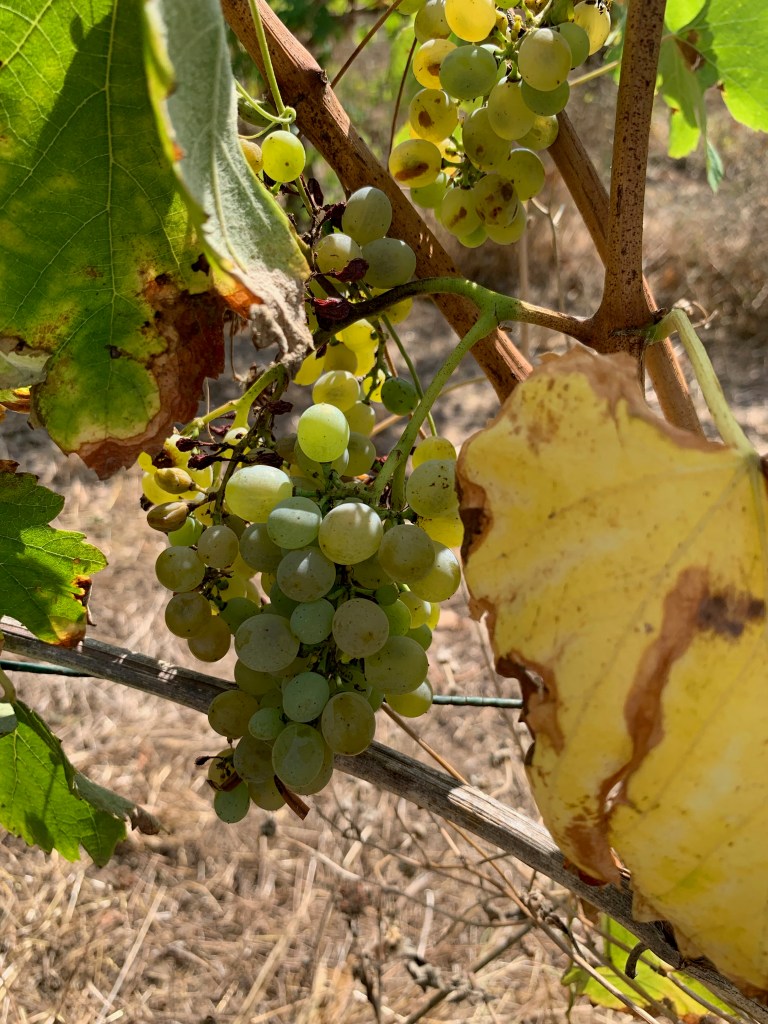 A visit out to the vineyards showed us Falanghina and Fiano growing… that is, where the blight on the land hadn’t reached them. In case you haven’t heard, peronospora is a fungus that has literally plagued the vines this year, destroying vineyards and subsequently the production, down by some estimates as much as 40% nationwide in Italy this year. What is also devastating is seeing entire vineyards look like they’ve gone up in smoke, with leaves burnt deep red or brown, and no grapes on the vines. So sad!