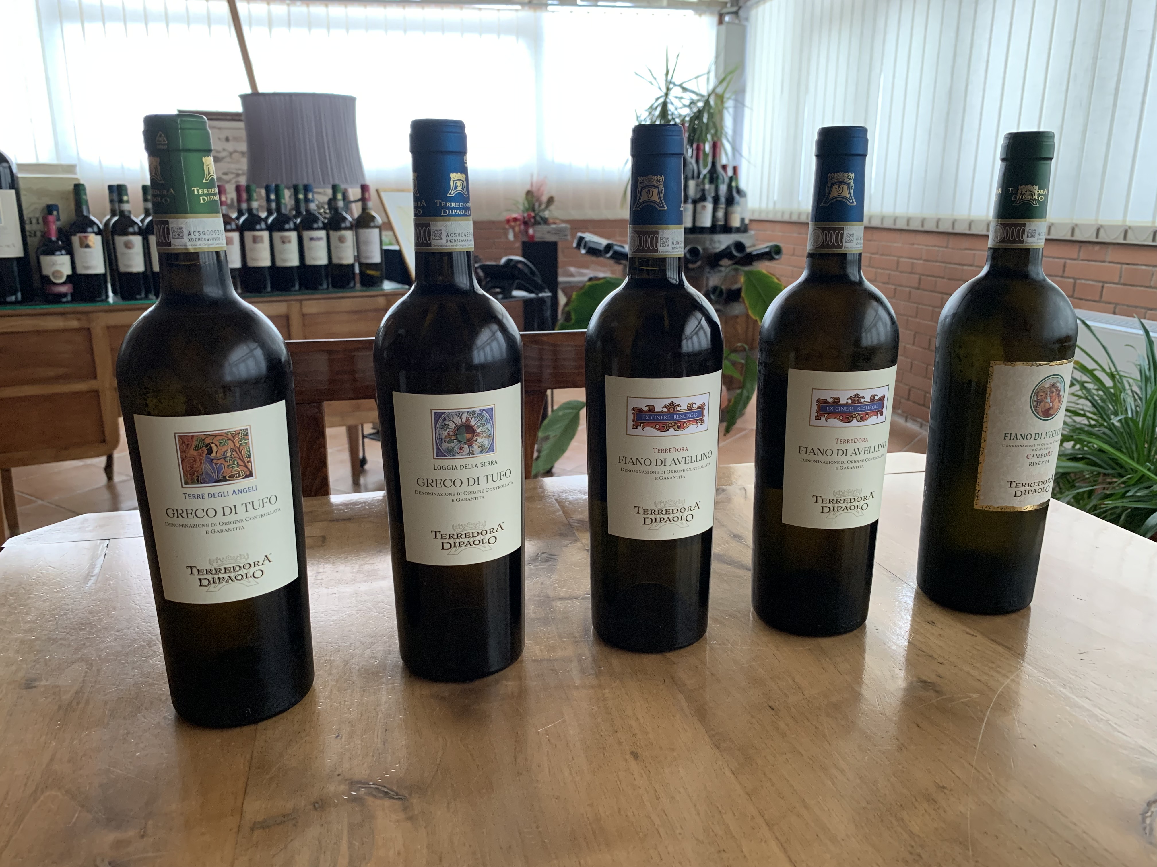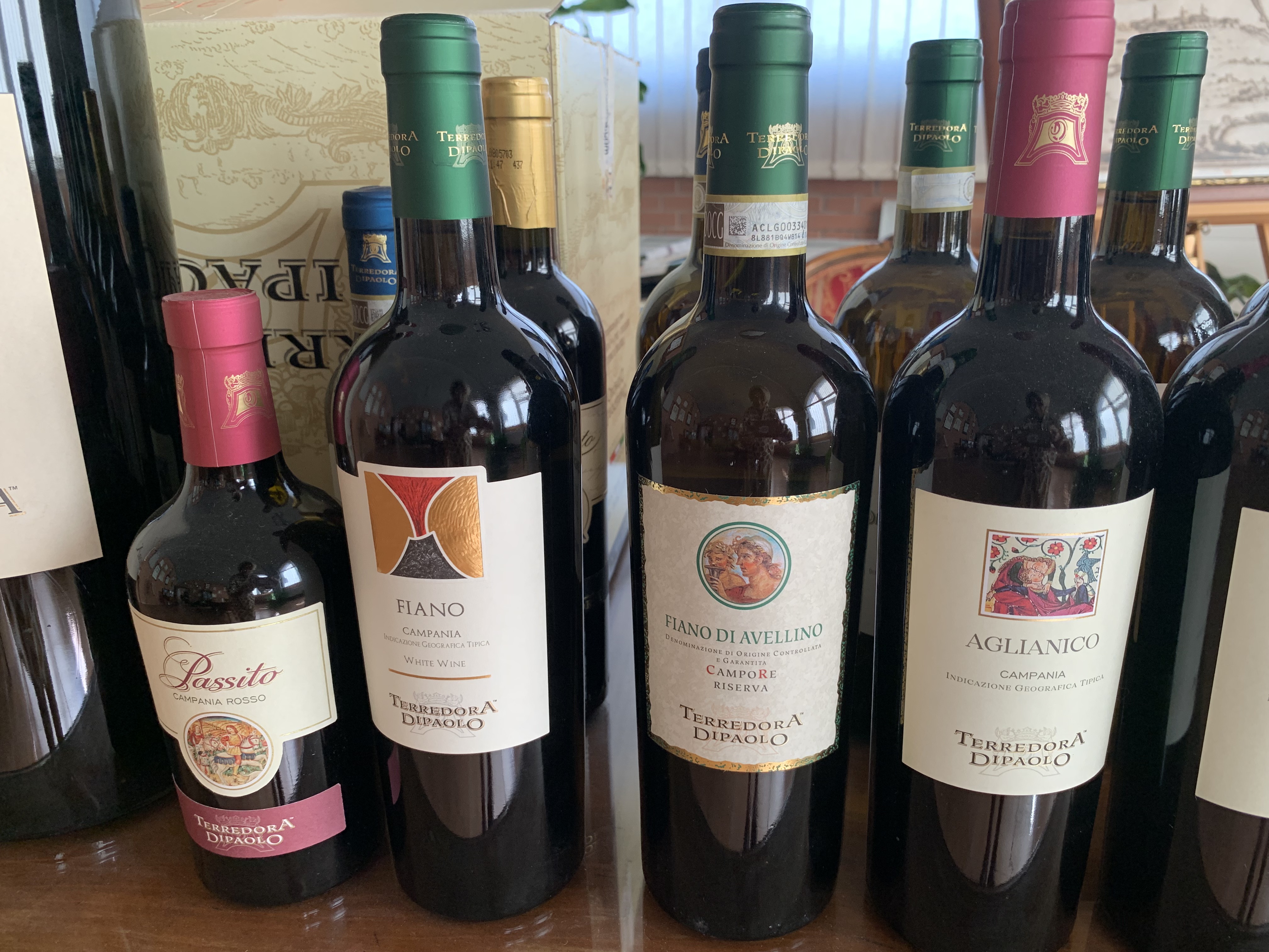The full gamut here at Terredora Dipaolo, from white to rosé to red, with a passito thrown in for good luck!