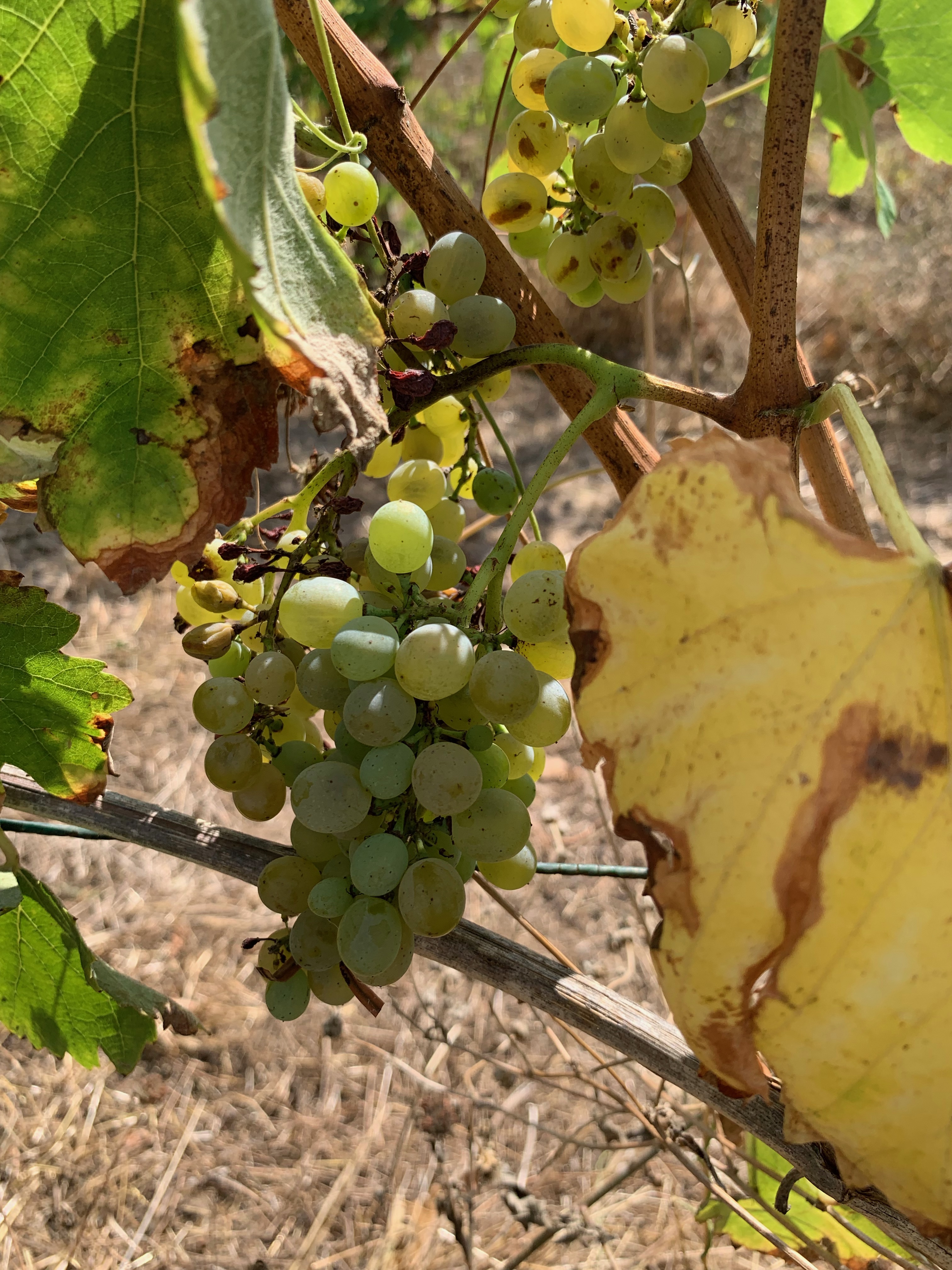 A visit out to the vineyards showed us Falanghina and Fiano growing… that is, where the blight on the land hadn’t reached them. In case you haven’t heard, peronospora is a fungus that has literally plagued the vines this year, destroying vineyards and subsequently the production, down by some estimates as much as 40% nationwide in Italy this year. What is also devastating is seeing entire vineyards look like they’ve gone up in smoke, with leaves burnt deep red or brown, and no grapes on the vines. So sad!